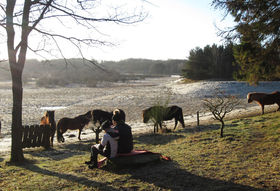 Morgenmaden blev indtaget med udsigt til nabomarkens heste og til landskabet i Lindenborg Ådal, og selv om det stadig var koldt, så kunne morgensolen alligevel varme så meget, at et par af spejderne fik sig placeret i solen for at nyde de første varme stråler.