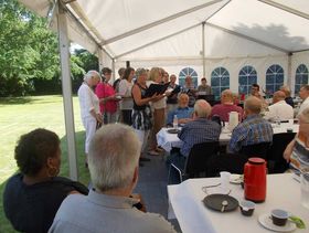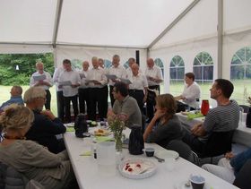 I det opstillede telt i haven sang Veggerby kirkes Mandskor og Det klassiske kor.