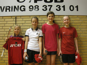Finaledeltagerne i U13C damedouble Louise Dupont, Cecilie Liltorp, Stine Krabsen Abildgaard og Anne Sofie Bjørn.