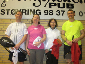 Finaledeltagerne i mixdouble i motionistrækken Henning Mogensen, Vibeke Nørlem, Inge Sandersen og Vagn Larsen.