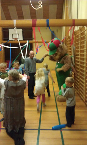 Omkring 30 børn i alderen fra to til ti år var fremmødt i nattøj og med sovedyr og dyner til et par hyggelige timer. Der blev leget med ballonerne som lå rundt omkring på gulvet, små-puttet på madrasserne, leget ”pudedans”, abe-efter-leg, pebernøddeleg. Pludselig kom der nogen - det var en stor mascotbamse. Den var kommet på besøg for at lege. Børnene tog pænt i mod, alle ville hilse og røre, bamse var et hit. Bamsen var med til bro bro brille. Bamse delte fredagsslik ud til børnene, der var lagt op til rigtig hygge og godnathistorie, mens forældre sad med og småsludrede over kaffe og kage.