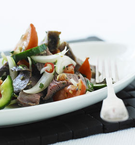 Blandt rådgivningen er sunde madvaner og opskrifter, som blandt andet omfatter denne lækre Thailandske bøfsalat.