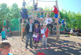 GODTHÅB: Solen skinnede på eleverne på Lyngbjerggårdskolen, og smilene var store, da den nye legeplads og multibane skulle indvies på denne flotte fredag formiddag. Saksen på silkepuden var fundet frem i dagens anledning, og formanden for støtteforeningen til Lyngbjerggårdskolen, Martin Jensen, klippede kyndigt snoren over til stor jubel for alle: Nu var alt færdigt, og nu kunne den nye legeplads officielt tages i brug.