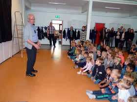 Flemming Christensen, der har doneret billedet, fortalte om baggrunden for de flotte gaver til Rebild Kommunes skoler.