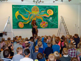 Maria Dubin fortsætter sit arbejde på skolerne i Rebild Kommune, hvor alle 13 skoler får et maleri inspireret af havet og sponsoreret af fabrikant Flemming Christensen og SAWO Fonden.