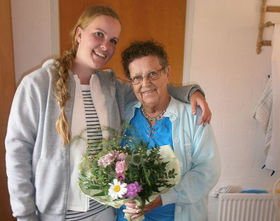 Tanja har en hyggelig tradtition med, at give hendes mormor vinderbuketten. Her ses Tanja med mormor Ellen Jensen, Suldrup.