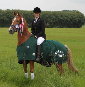 De stolt hjembringe det eftertragtede dækken, som bevis på at hun vandt cuppen i lc dressur for kat. 1 og kat. 2 ponyer.
