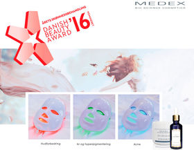 Denne unikke Medex lysmaske har i løbet af blot kort tid skabt så stor interesse hos både fagpersoner og skønhedsredaktører, at den nu er blevet nomineret til ”Årets Skønhedsbehandling” ved Danish Beauty Award 2016.