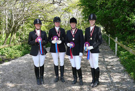 Medajle-pigerne fra LA1 holdkonkurrencen for Hest. Fra venstre: Rikke Sabroe, Malene V. Esbech, Iben Ejdrup og Nikoline Kjær.