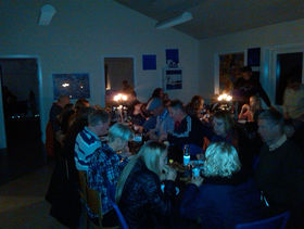 Lørdag den 31. oktober var hele byen inviteret til spisning i FDF Huset, som var pyntet til et uhyggeligt spøgelseshus.