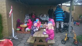 Dagplejere og dagplejebørn mødtes fra morgenstunden. Da alle børn var kommet blev der spist boller, og humøret var højt selv om det regnede det meste af dagen.