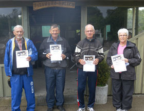STØVRING: Selv om det var en våd omgang, da Ældre Sagen i Støvring havde petanquekamp i fredags, blev der uddelt diplomer til både 1. og 2. pladserne, nemlig Hans Mikkelsen og Poul Erik Kristensen på 1. pladsen og Anni Lassen og Oskar Nielsen som vinderpar nr. 2. Begge par går videre til distriktsturneringen, der finder sted i begyndelsen af august, og vinder de der, er der finale i Tivoli i september.
