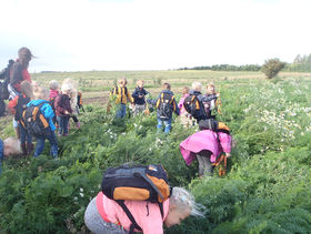De ældste børn cyklede derud og trak selv gulerødder og kartofler op af jorden – forundringen var stor, da der både kom orange, gule og lilla gulerødder op af jorden. Grøntsagerne blev efterfølgende brugt til at lave suppe ude på bålet.