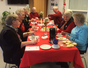 Snakken gik lystigt ved kaffebordene.