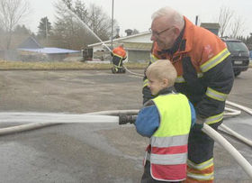 Brandmændene var godt forberedte, så børnene kunne prøve en rigtig brandsprøjte.