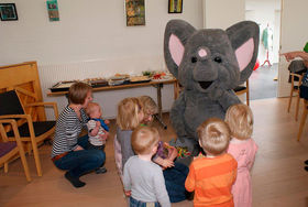 Alle børn og voksne hyggede sig hele dagen med fælles morgenbord, super god underholdning ved Rikke Kamedula Skovsbo, som er musikpædagog fra Rebild Kulturskole, børnefrokost lavet af Sønderup Landkøkken og eftermiddagens overraskelse i form af besøg af Jutlander Banks maskot Bibifant.