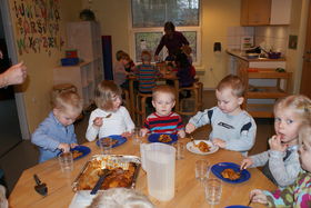 Herefter serverede Tumlehøj lækker lasagne til alle børnene i Tumlehøj, og dagen sluttede med en kæmpe kæmpe kagemand, som fyldte hele børnehavens store multirum.