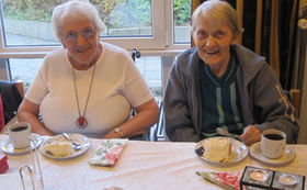 Haversdal Ældrecenter i Haverslev fejrede dagen med fælles kaffebord i den store sal. Frivillige fra Ældre Sagen kom og hjalp personalet med at dække bord og brygge kaffe. Lagkagerne fristede og flere klemte to stykker ned.
