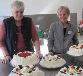 Lagkager serveret af frivillige fra Ældre Sagen, Anna Degn Andersen og Hanne Rolandsen.