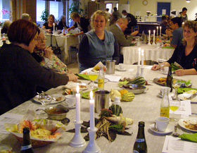 Alle var klædt på til lejligheden, og bordet var pyntet i efterårets farver.