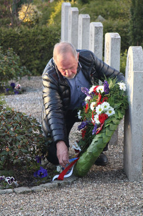Gunner Kristensen lagde kransen ved kaptajn Guilonards gravsten.