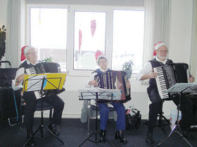 Et lille tre-mands orkester julemusik på harmonika og sang til.