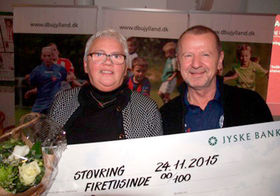 Det skete, da Ruth Andersen modtog den såkaldte Gør-en forskel-prisen 2015, som DBU Jylland og Jyske Bank står bag. Udover hæderen modtog Ruth Andersen i den forbindelse en check.