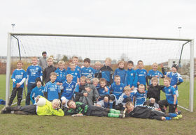 U10 drengene fra Støvring IF, samt mascoten Rasmus i midten.
