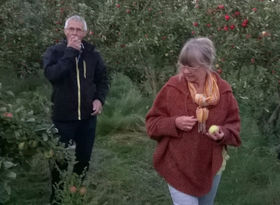 Aftenen bød på rundvisning ved Dorthe og Arne Koldsø, og smagsprøver på forskellige æblesorter samt pærer og blommer m.m.