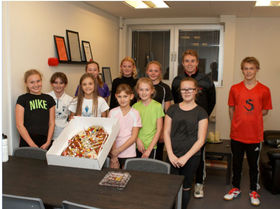 De heldige vindere blev U13/15-holdet, som fejrede sejren med en festlig kagemand - og endda på træner Emils fødselsdag.