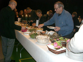 Sådan er situationen præcis på suppeaftenerne i Sognegården i Støvring. Den første mandag i måneden høres en summen af stemmer og latter sig i Sognegården. Et initiativ fra Ældre Sagen og Menighedsrådene ved Støvring-, Gravlev- og Sørup Kirke er blevet til en madoplevelse og en succes. Op til 90 mennesker er mødt op til en god portion suppe, snak og sang i Sognegården.