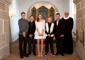 VEGGERBY: Fra venstre: Rasmus Horn Petersen, Martin Winther Nedergaard, Emma Hedegaard, Peter Søe-Larsen, Magnus Sejr Adamsen.