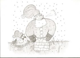 Men først ville han lige være sikker på, at han stadig kunne krybe gennem skorstenen. Han kunne sagtens nå at krybe gennem sin egen for at være på den sikre side.