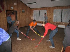 Resten af natten gik med Singstar, spil, masser af snak og hygge. Kun afbrudt midt på natten af et spil hockey i strobelys.