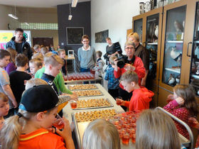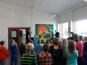 Eleverne er på den måde blevet inddraget i arbejdet med billedet og mange af dem er også blevet inspireret til at male billeder i billedkunst. Derfor var der også fremvisning af mange malerier, som børnene havde fremstillet.