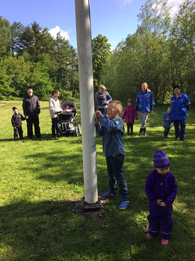 Dagens program gik således ud på at hejse flag, tænde bål til skumfidus-ristning, finde kryb og insekter som efterfølgende blev studeret under forstørrelsesglas, og en tur med fiskenet i åen blev det også til.