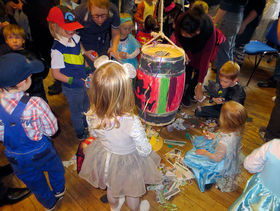 De store fik først slået katten af tønden, og så fulgte de andre straks efter og der var kamp om karamellerne.