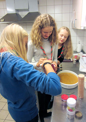En af spejderne havde til aftenen medbragt en flot kage, hvor der med chokolade var skrevet USB i glasuren. I løbet af få øjeblikke var bogstaverne i glasuren afmonteret, og så startede ellers den store forvandling, der omfattede perlesukker farvet med frugtfarve, kagecreme med juicesmag og andre spændende ting.