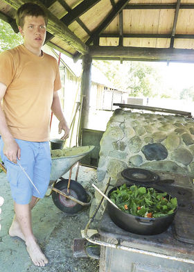 Nogle sover i køjer i bjælkehytten, og det er meget hyggeligt med slik og godnathistorier, mens andre sover ude i det fri i shelters. Alle hjælper hinanden med at lave mad, bl.a. i det store udendørs brændekomfur og stenovn. Her blev brændenældesuppe og pizza det helt store hit.