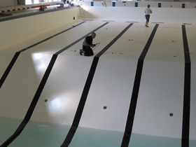 Søndag i uge 28 startede håndværkerne med at tømme det store bassin og to dage efter kunne selve arbejdet begynde. Alt det gamle folie skulle afmonteres, beslag, dyser, stiger med mere skulle fjernes, før man kunne påbegynde selve arbejdet med det nye folie. Tirsdag aften i uge 30 kunne man påbegynde vandpåfyldningen igen og hvad dermed hørte. Ud over selve arbejdet med den nye foliebund blev også andre tekniske reparationer foretaget, så det har været en travl tid i Svømmehallen.