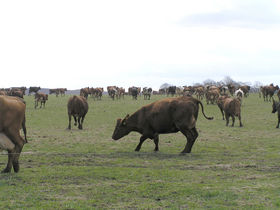Mon køerne ved, hvad der skal ske, når der pludselig dukker så mange mennesker op? I hvert fald var de alle samlet ved udgangen og ventede på at blive lukket ud i friheden. Indimellem kom der nogle utålmodige brøl. Præcis kl. 12.00 blev lugen åbnet. Og så kom der ellers liv i dyrene. I fuld firspring og med løftede haler blev marken indtaget. Køerne hoppede og dansede og løb rundt på marken for i næste øjeblik at stoppe op og kigge nysgerrigt på de mange publikummer, for så igen at fortsætte i løb ud i friheden.