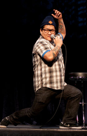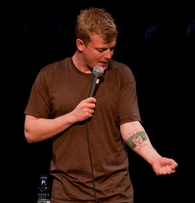 Dybvad lavede morsom komik om alt fra reklamer for analkløe og rollen som ”wingman” til thailandske kvinder og golfkugler. Også Tina Lund fik et par meget kritiske ord med på vejen.