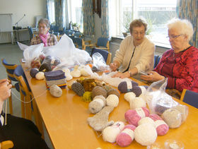 Garnet får damerne gennem private, men også forretninger har doneret garn, hvilket man naturligvis er glade for.