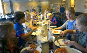 Efter de fysiske udfoldelser gik turen tilbage til Støvring, og som afslutning på en god dag blev der budt på pizzabuffet.