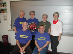 Ny bestyrelse med afgående Tove Larsen. Bagest fra venstre: Lisbeth Herbsleb, Tove Larsen der er afgående, Mie Christensen, Birthe Andersen der er ny. Forrest: Hans Lassen og Lars Lyngby.