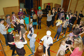 Ind imellem blev der danset fællesdans i salen, og efter middagen var der underholdning. Først ved skolens SFO-band, til lejligheden kaldte de sig ’Rasmus Seebach band’, og de optrådte med musik og dans.