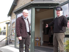 Erling Junker Holst (th) har taget kasketten på og er klar til at byde Seniorbiografens trofaste gæster velkommen til en ny sæson. Til venstre ses Kinorevuens “direktør” Flemming Jensen.