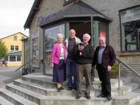 Her står nogle af de frivillige i Seniorbiografen i døren til Kinorevuen. Fra venstre: Margit Høgh, Niels Jørn Grønhøj, Erling Junker Holst og Flemming Jensen.