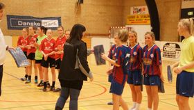 U 15-piger får overrakt præmier.