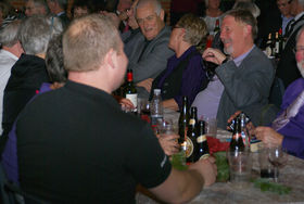 Straks fra aftenens begyndelse var der en rigtig hyggelig stemning, som fortsat bredte sig efterhånden som aftenen skred frem, måske styrket af at de sidste lydprøver først blev foretaget efter at publikum havde indtaget pladserne ved bordene.